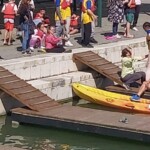 Alguns alunos puderam experimentar atividades de canoagem adaptada.
